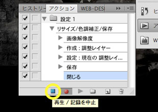 (5) 記録の中止ボタンを押す。これでアクションの完成です。