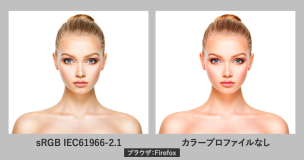 彩度が高く(設定による)、人物の場合は大抵赤ら顔になってしまいます。ごく少数のユーザーとはいえ化粧品の宣伝用画像だったりしたら致命的ですよね。某有名化粧品メーカーの画像もカラープロファイルが埋め込まれていないので広色域ディスプレイお持ちの方はサイトをFirefoxとsafariで比較するとよくわかると思います。